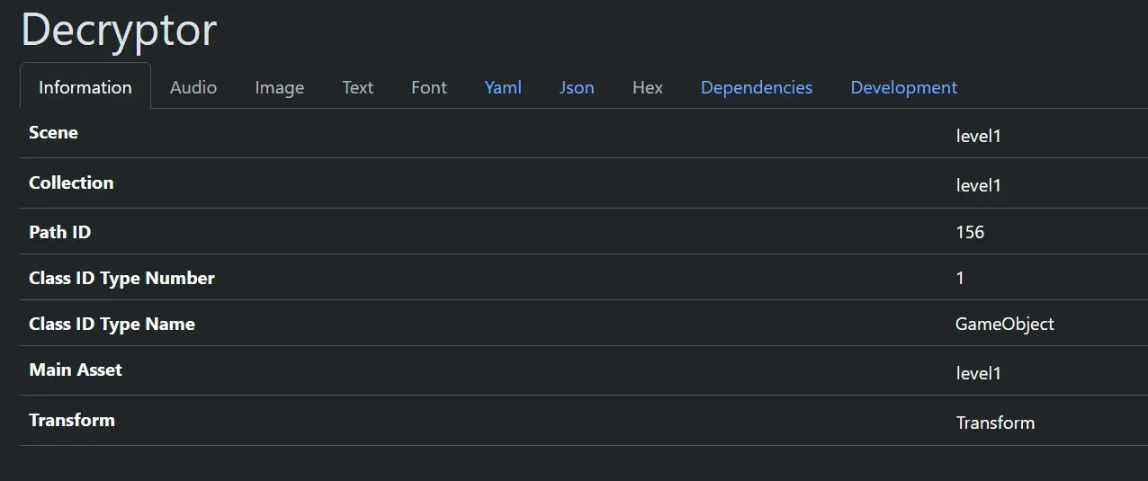 When I look through the level{xxx} files, seems like it doesn’t have anything related to the descriptions, where we need to find. So, I decided to use MelonLoader and UnityExplorer to search inside the game. This way can help you to figure out the hidden flag so you should try :). Installation is quite easy so I will not mention here.