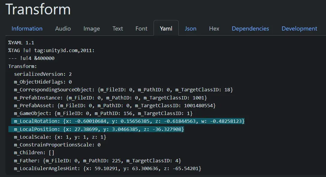 Phew… we have finished half of the puzzles. I am also looking for a quick way to grab all these values from some lib like unityparser or UnityPy but they’re so dumb, I gave up on it :)